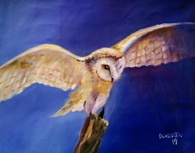 Flying Barn Owl Oil On Canvas 12x16 Original Painting Intense