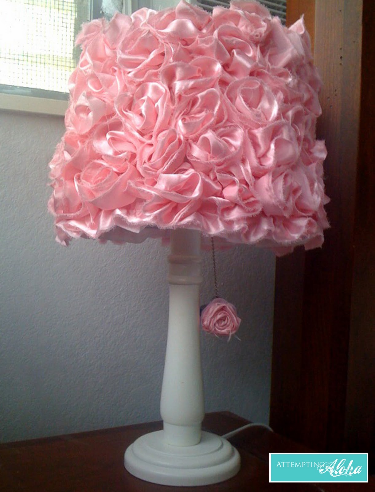 Rosy Red Buttons Rosette Lamp Shade Makeover